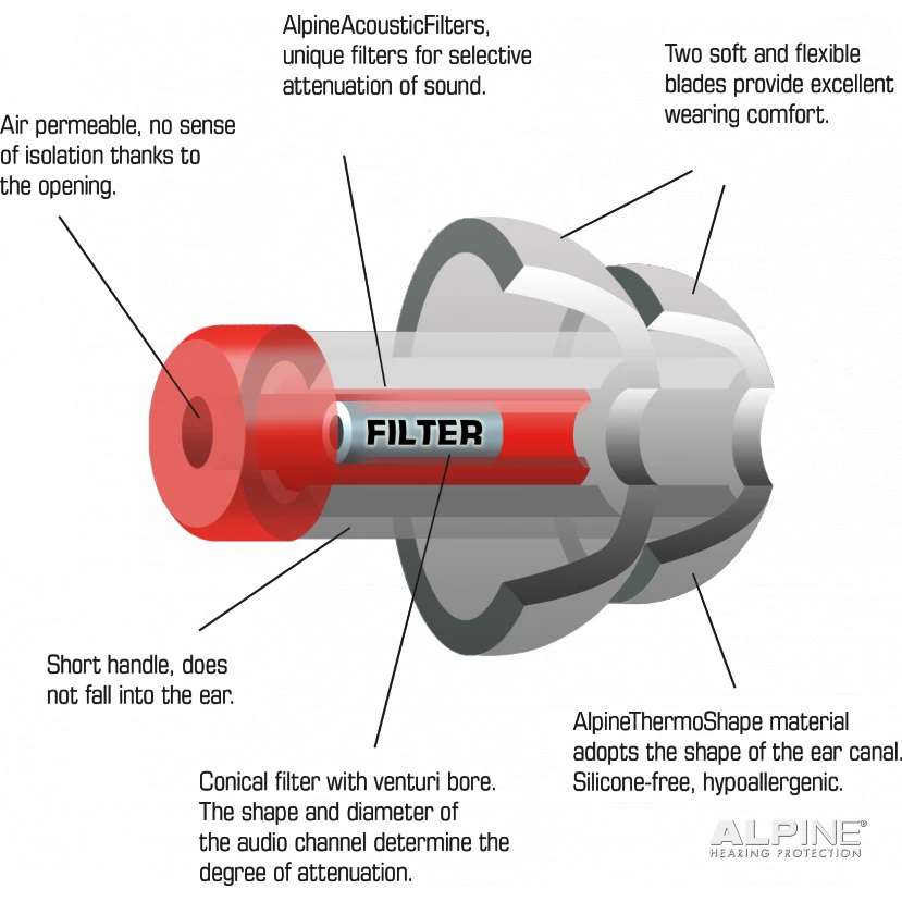 The Alpine MusicSafe Pro earplugs have an exclusive Dutch Design. The AlpineThermoShape™ earplugs and the AlpineAcousticFilters™ are produced in the Netherlands.