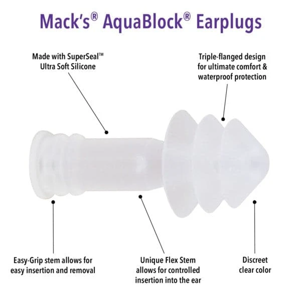 Mack’s AquaBlock ear plugs are fully reusable and washable.