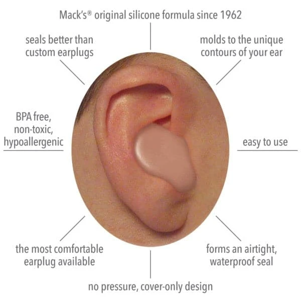Mack’s® Snoozers™ Silicone Putty Ear Plugs are made of hypo-allergenic, soft, moldable, silicone putty. Just like other Mack’s moldable silicone ear plugs, Snoozers mold easily, and comfortably to the unique contours of any ear. Once in place, Snoozers apply no pressure to the ear, and the “cover-the-canal-only” design provides unsurpassed comfort for quality, restful sleep.