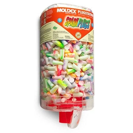 Moldex offers the convenience, increased compliance and cost savings of our popular earplug dispenser, the PlugStation with Sparkplugs® uncorded foam earplugs. With the PlugStation you can afford to put earplugs in all the places they’re needed. PlugStation’s convenience, ease of use, and high visibility lead to higher compliance and by giving quick access to workers it also saves worktime.