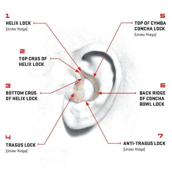- Ergonomic design and double-flange stem design conforms to ear shape for comfort and secure retention