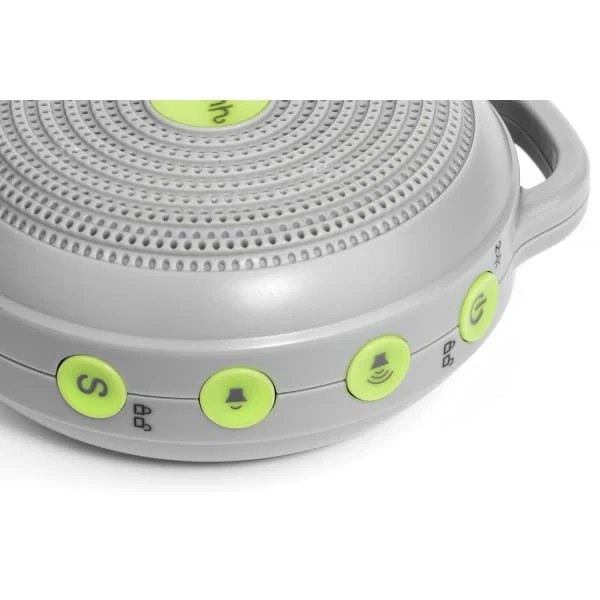 - Portable – Hushh is charged and ready to go: attach it to a stroller or car seat (baby-safe clip is included), or set it on any flat surface
